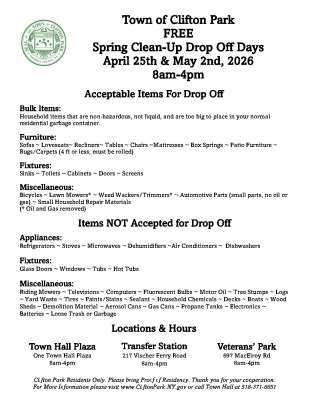 2026 Spring Clean-Up Drop Off Days